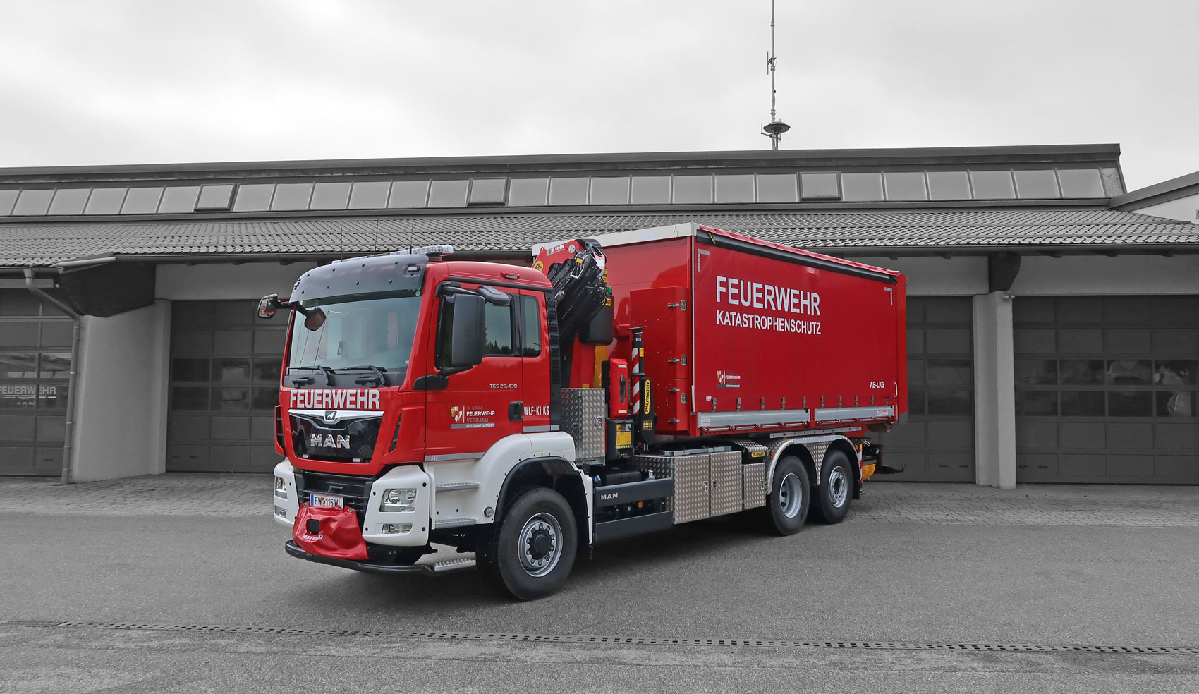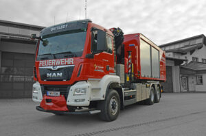 Besonderheiten Ladekran Palfinger, Lifthaken Palfinger, blaue und gelbe Blitzer zur Eigensicherung, Hebetraverse für PKW, Anschlagmittel, Abschleppstange, Besen und Schaufel, Schaufelgreifer, Holzzange, Arbeitskorb. Das bei uns angesiedelte WLF-Stützpunktfahrzeug kann seit Anfang Dezember 2021 für vielfältige Einsatzzwecke alarmiert werden, u.a. für schwere technische Hilfeleistung, Transportaufgaben, Kranarbeiten mit Schaufelgreifer, Holzzange oder Arbeitskorb. Durch die unterschiedlichen Abrollbehälter kann das Fahrzeug den verschiedenen Einsätzen rasch angepasst werden. Standardmäßig ist der AB-Rüst am Fahrzeug verlastet.