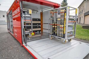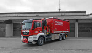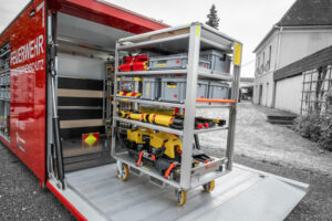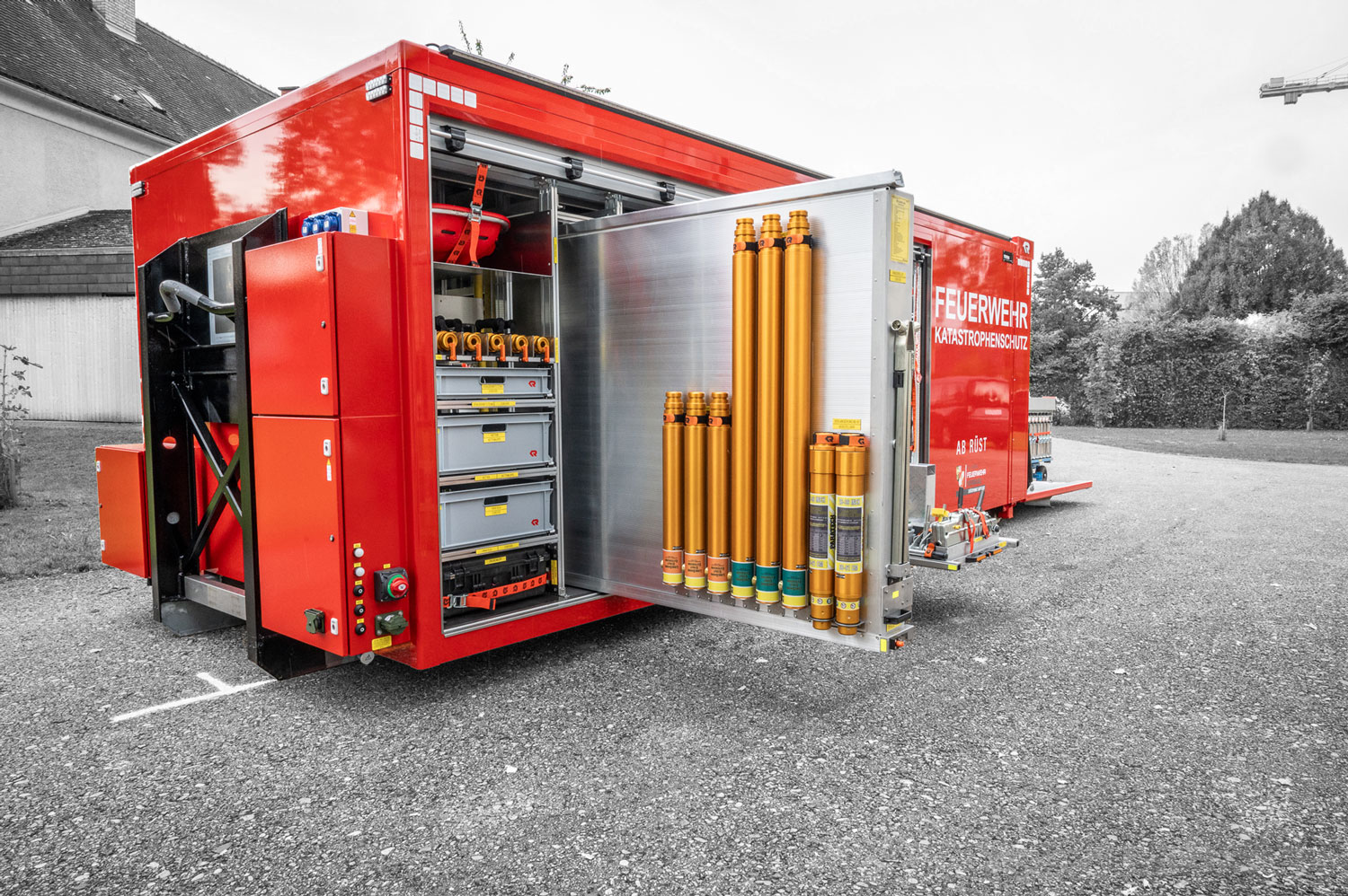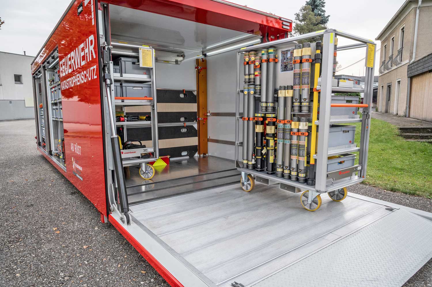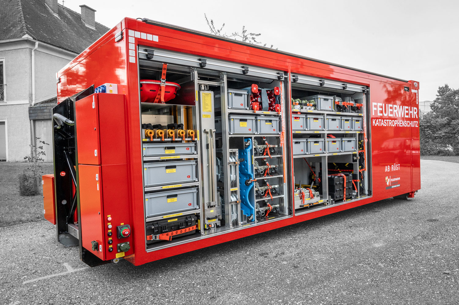 Besonderheiten Der AB-Rüst ist konzipiert, um bei Einsätzen im Bereich der technischen Hilfeleistung zu unterstützen. Der Fokus liegt dabei auf größeren schweren Technischen Einsätze mit LKWs, Bussen und Zügen, wenn die Standardausrüstung eines Rüstlöschfahrzeuges nicht mehr ausreicht. Er bietet im Heck Platz für drei Rollcontainer, diese können der Alarmierung angepasst werden. Auch bei Katastropheneinsätzen z.B. Hochwasser findet er Verwendung da er auch autark genutzt werden kann.